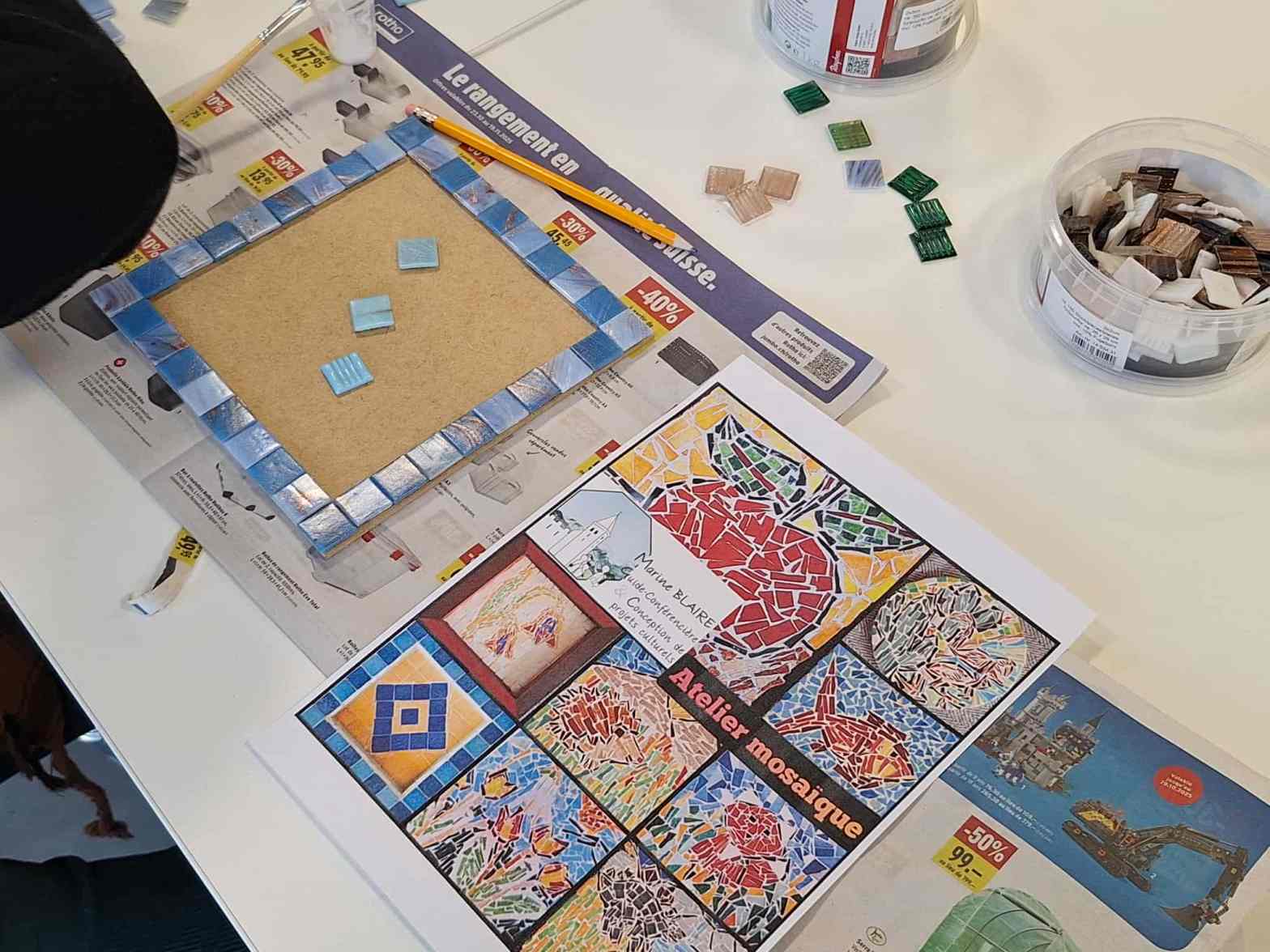 Retour sur le stage Eclats d’Art réalisé au sein la maison de quartier de Plainpalais à Genève pour Cité Séniors ! Déjà trois rencontres qui se sont terminées le 12 novembre 2025 avec le 3ème atelier d’initiation à la mosaïque. Humains, arts et partage. L’initiation à la mosaïque. Un projet inscrit dans mes activités d’accessibilitéLire la suite « Cité Séniors, tesselles, détente et création ! »