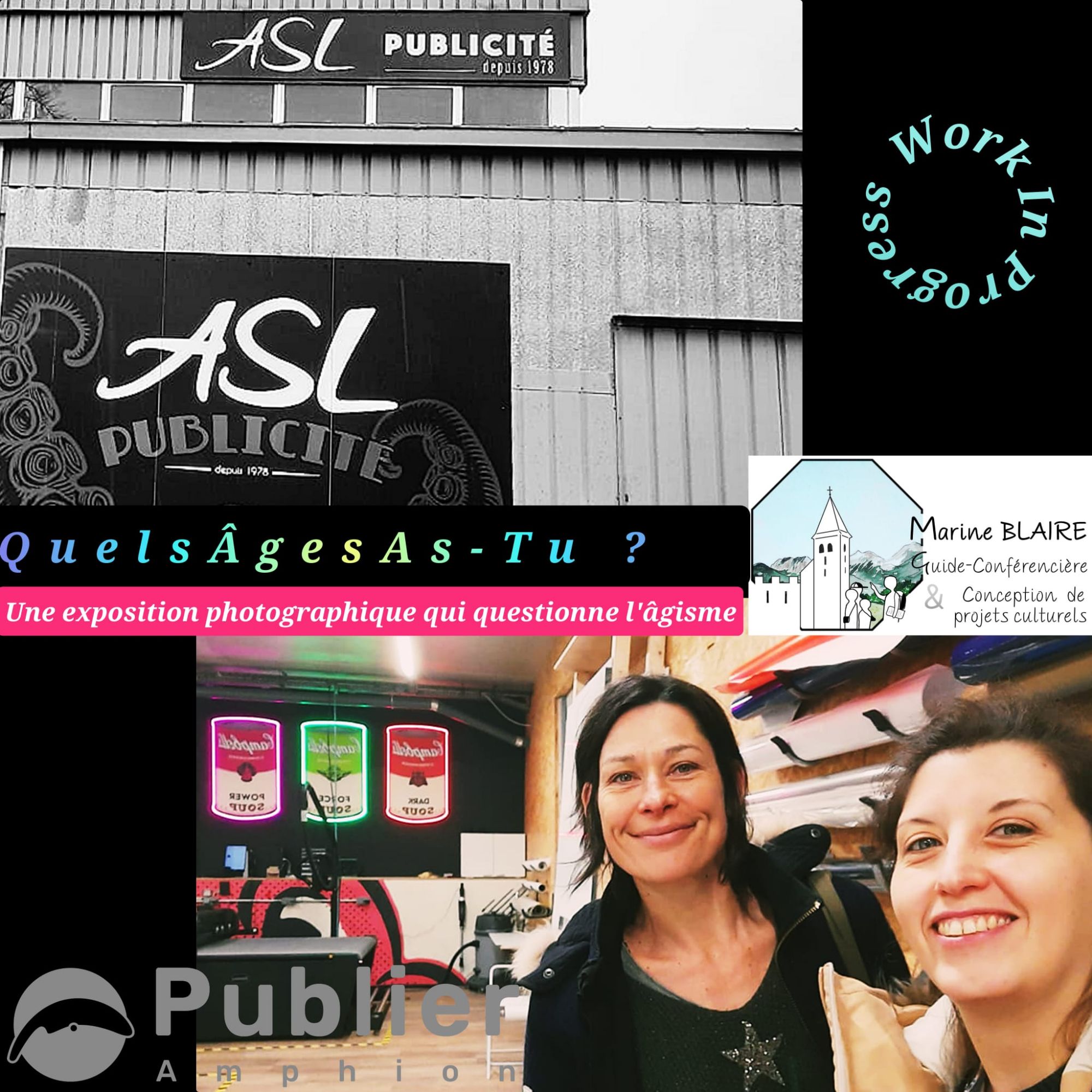 Ce projet d’exposition a été mis en place au travers d’un partenariat avec le CCAS de Publier. Il s’agit d’une exposition décalée, engagée et fun qui cherchent à déconstruire les stéréotypes de l’âgisme. Cette exposition inédite est itinérante. Elle sera proposée en exposition temporaire dans plusieurs lieux partenaires de la mairie de Publier.